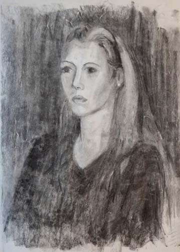 The figurative works in this gallery are all drawn or painted from life, using either charcoal or oil paint. The gallery includes a selection of mudheads. The mudhead, an often featureless, mud-colored painting of a figure silhouetted against sky or sea, is a technique of painting originating with Charles W. Hawthorne, the founder of the Cape Cod School of Art in 1896. Hawthorne, who was teaching the then new Impressionist vision in Provincetown, MA, used the mudhead as a teaching method. He posed models outdoors against the sun to teach his students how to perceive the color and shape of light without getting caught up in painting the outline and features of the model.