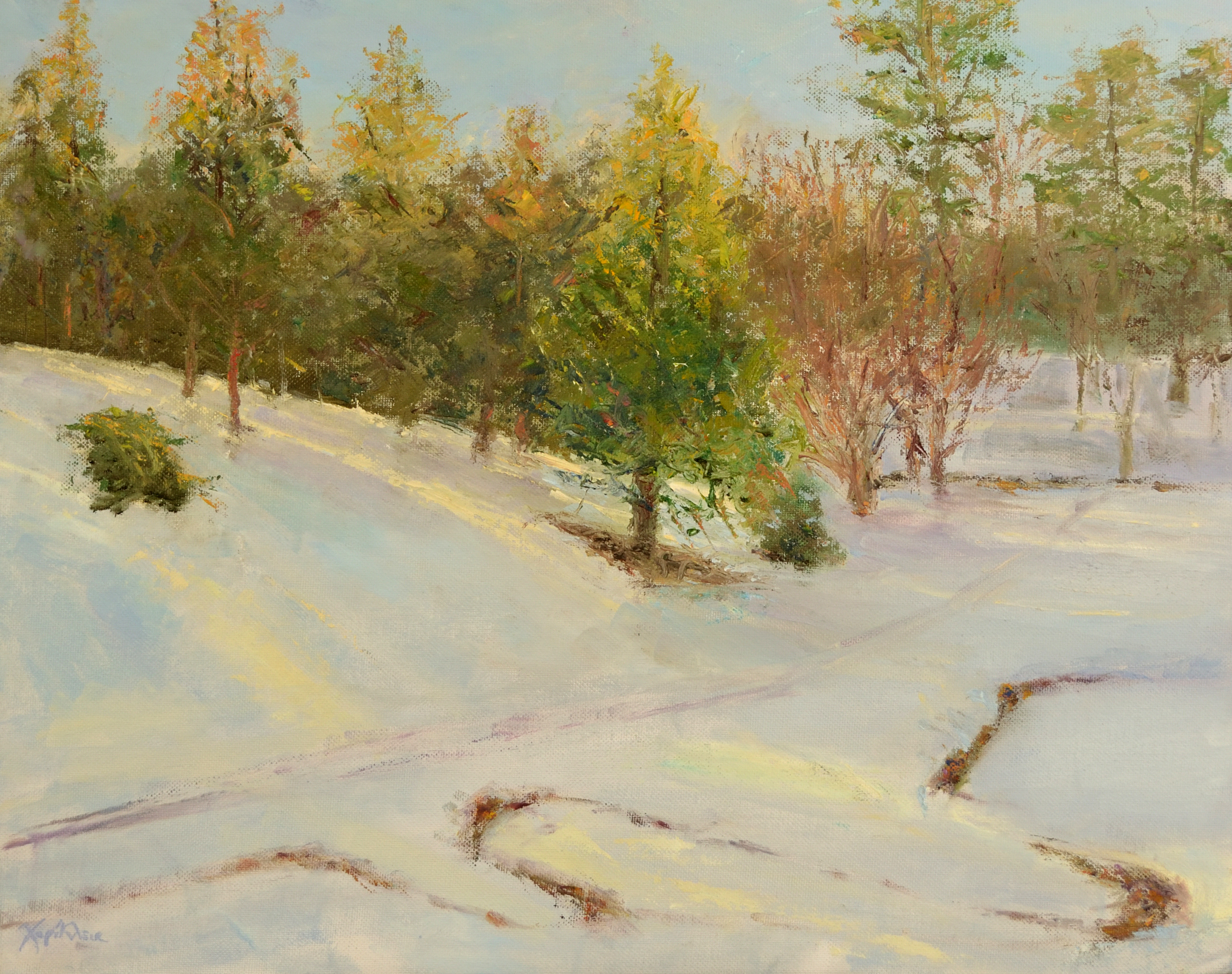 These plein air landscapes are painted in oil on panel in various places in Boston and New England, such as the Arnold Arboretum, Cape Cod, the South Shore, Cape Ann, the Berkshires, and the Monadnock Region of New Hampshire.